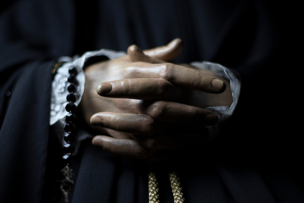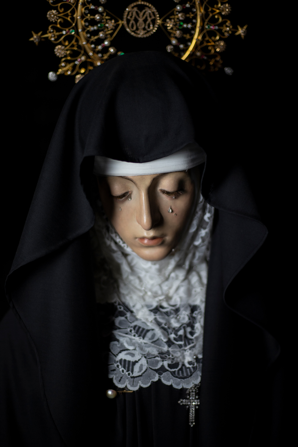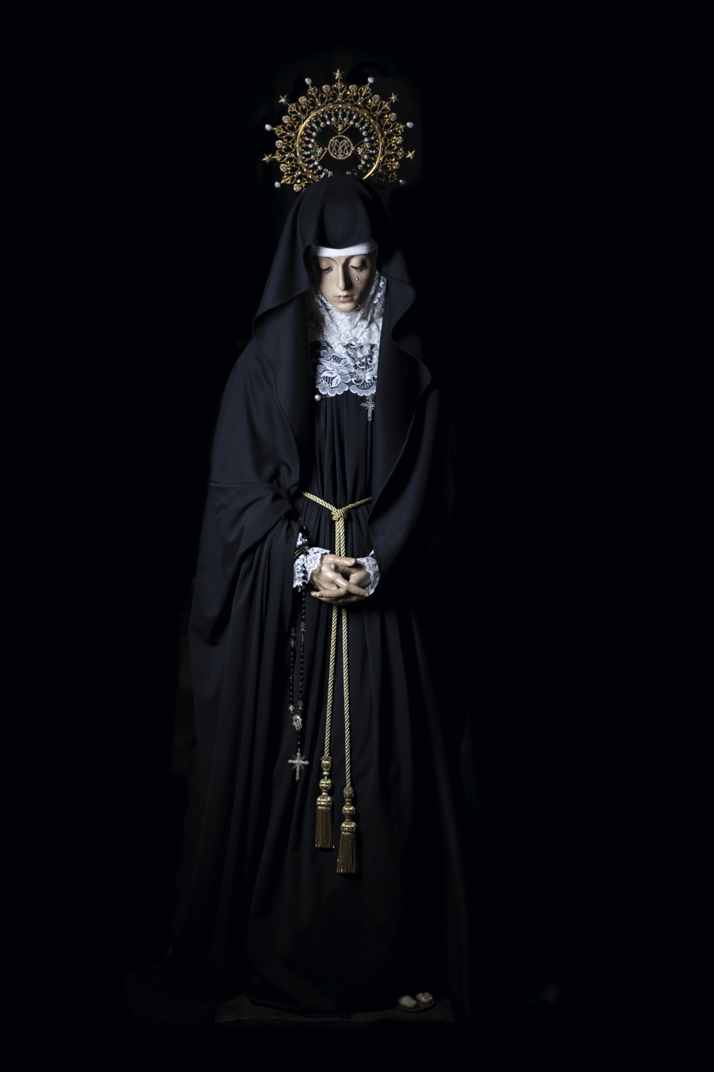 Pese a ser Jesús Nazareno el titular de la Congregación sin lugar a dudas ha sido Nuestra Señora de la Soledad su principal imagen de devoción. La antigua figura, hoy todavía al culto en la iglesia de San Cebrián de Castro, es también imagen de vestir sin mérito especial, de tamaño casi natural, inclina levemente la cabeza, y cruza las manos a la altura de la cintura; se viste con manto de terciopelo negro y lleva como único adorno una sencilla diadema de plata. Como ya se apuntó carecemos de dato alguno sobre autoría y procedencia. Siempre dispuso de un modesto ajuar compuesto por manto, delantal, corona, rosario y cruz de pecho, que sabemos se remozó en varias ocasiones. Así en 1703 el deterioro de su manto obligó a encargar uno nuevo, que a su vez fue sustituido por otro de la misma tela bordado en oro en 1798. El viejo, pese a estar muy estropeado por las lluvias, se aprovechó para La Verónica. En 1831 Francisco Furnier regaló a la cofradía una corona de metal dorado y en 1851 D. Patrocinio Rivera vecino de Albalate un rosario de oro con un tulipán del que pendía una crucecita de lo mismo, y pocos arios después D. Manuel Alonso donaba una cruz de pecho.